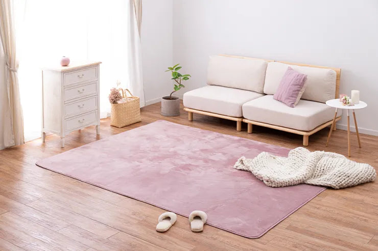 おもわず触れたなるような、メレンゲみたいなふんわりなめらかタッチラグ。薄手でやわらかく、折りたたんで収納もコンパクトに。軽量でお掃除や模様替えなどでの移動もらくらく!毛足が短めでゴミが入り込みにくくお手入れも簡単、汚れても洗濯できるからいつもきれいで衛生的に、安心してお使いいただけます。