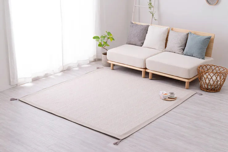 ざっくり感のあるコットンの心地よい手触りとやわらかな風合いが魅力のインド綿100%ラグ。