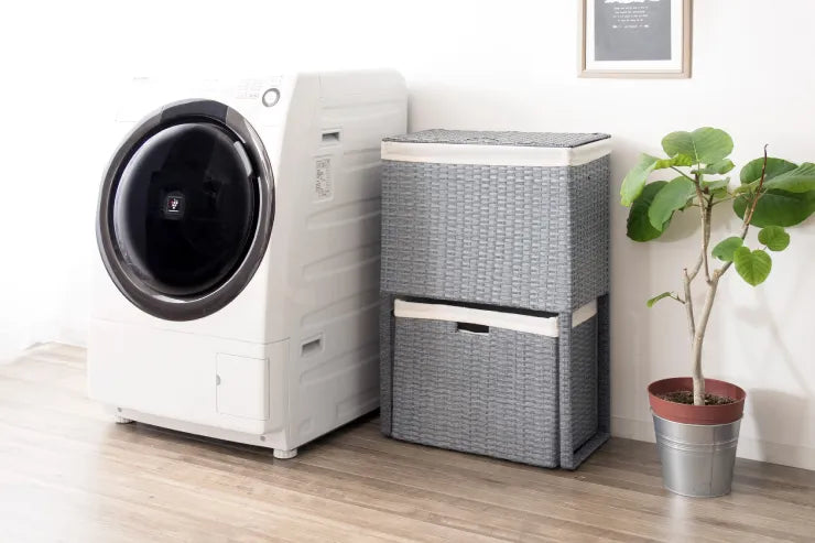 衣類やバスタオルがたっぷり入る省スペースな縦型ラタンランドリーボックス『Diario(ディアリオ)』。