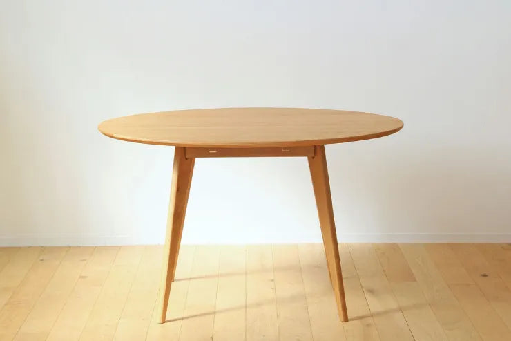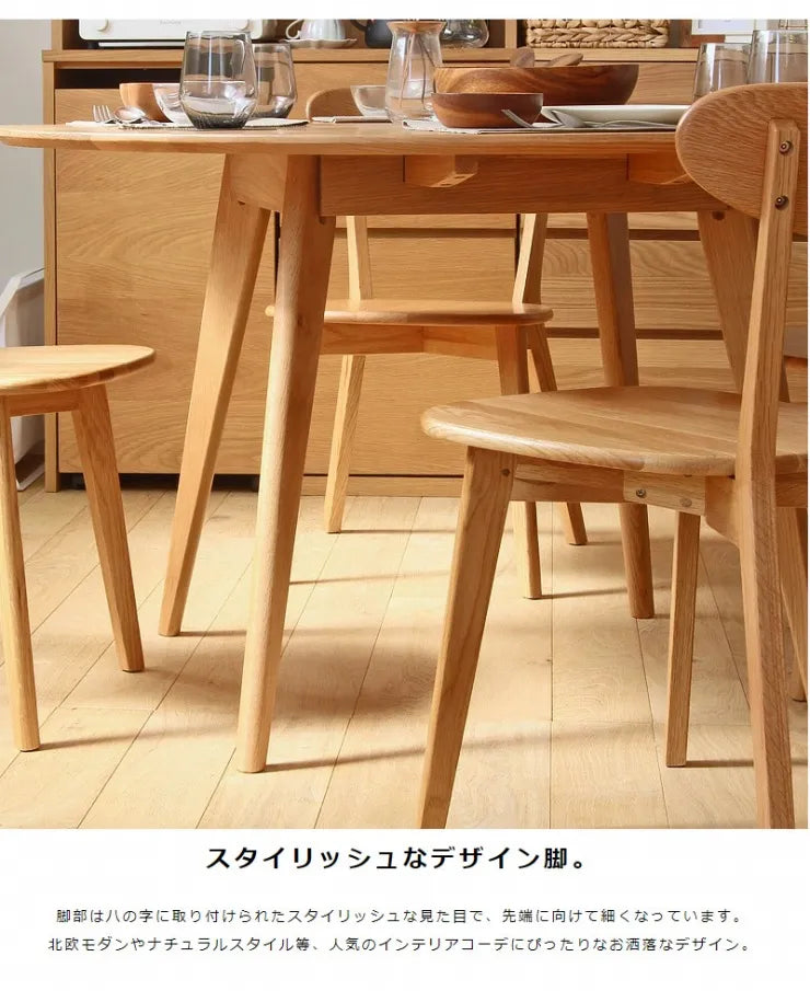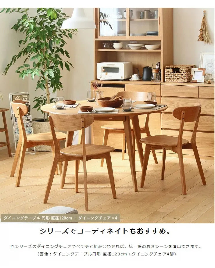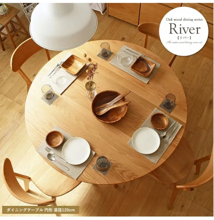 天然木オークを使用したダイニング家具『リバー』シリーズ。美しい木目と温もりあるデザインで、家族と共に長く使えるシンプルな一台を。