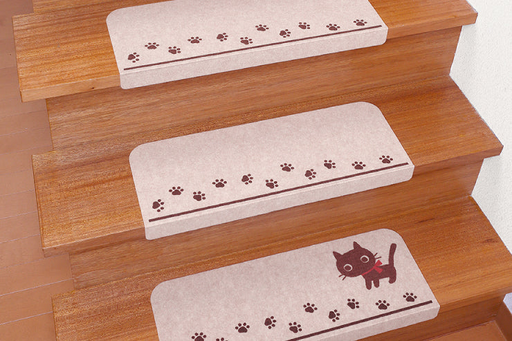 おくだけ吸着 折り曲げ付階段マット 55×21cm 薄さ3mm 15枚入り イヌ ネコ