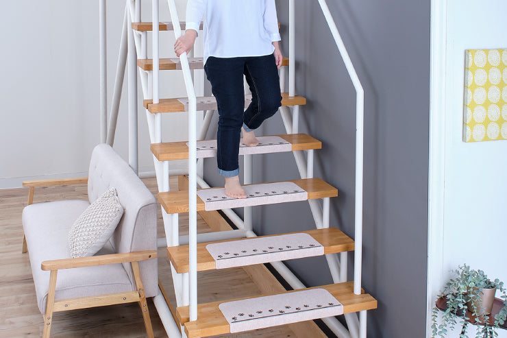 吸着階段マットを敷くことで滑り止めとなり、ぺっちやお年寄りの足腰、関節をしっかりと守ります。お子様が走り回った際の怪我防止策としても最適です。