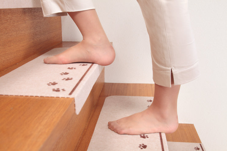 ペットの足腰の負担を軽減!吸着階段マットを敷くことで滑り止めとなり、ペットやお年寄りの足腰、関節をしっかりと守ります。お子様が走り回った際の怪我防止策としても最適です。